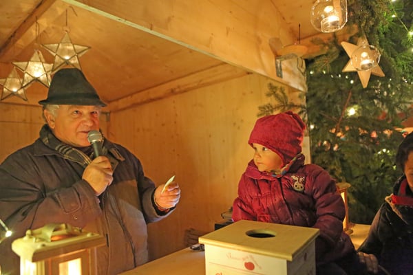 Sepp und Elisabeth sind in ihrem Standl Ansprechpartner, Moderatoren, Informationsstelle, Losverkäufer, Adventfensteröffner ... und einfach immer für alle da!