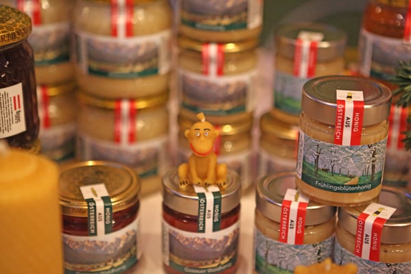 Draußen am Platz gibts feine Schmankerl und Süffiges, Lebkuchen und Honig, schöne handgemachte Objekte und frisch gebackenes Brot.