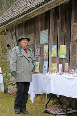 ... die kreativen Aussteller im Stadl haben wieder viele liebevoll gearbeitete Produkte an ihren Ständen. Sabine zeigt einen Film über den langen Weg der Wolle zum Socken - und mit einem alten Spinnrad, wie die Fäden hergestellt werden.