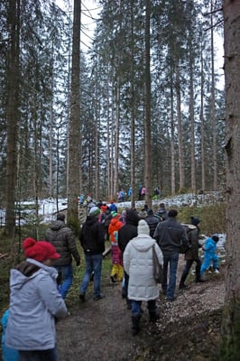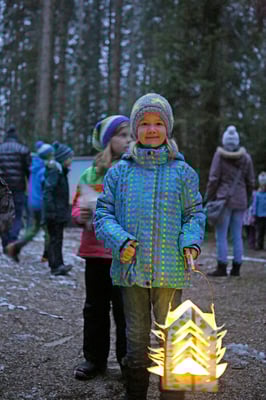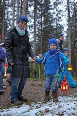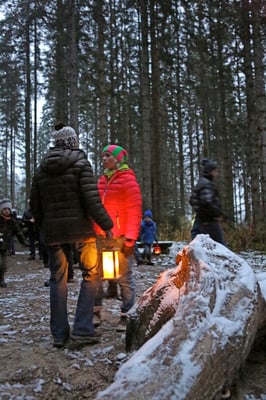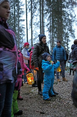 Betty erzählte die Sternengeschichte und die Kinder machten sich auf die Suche mit ihren Laternen im geheimnisvollen Urzeitwald ...