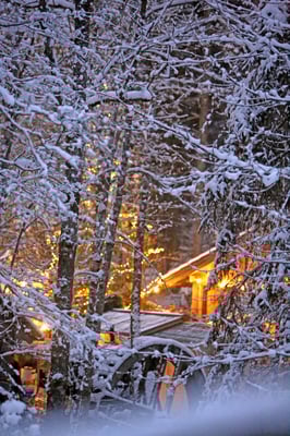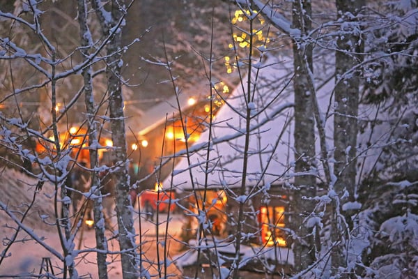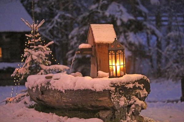 ... als am ersten Tag der Bergweihnacht der Schnee ein Glitzern über all die Laternen, Kerzen und warmen Lichter